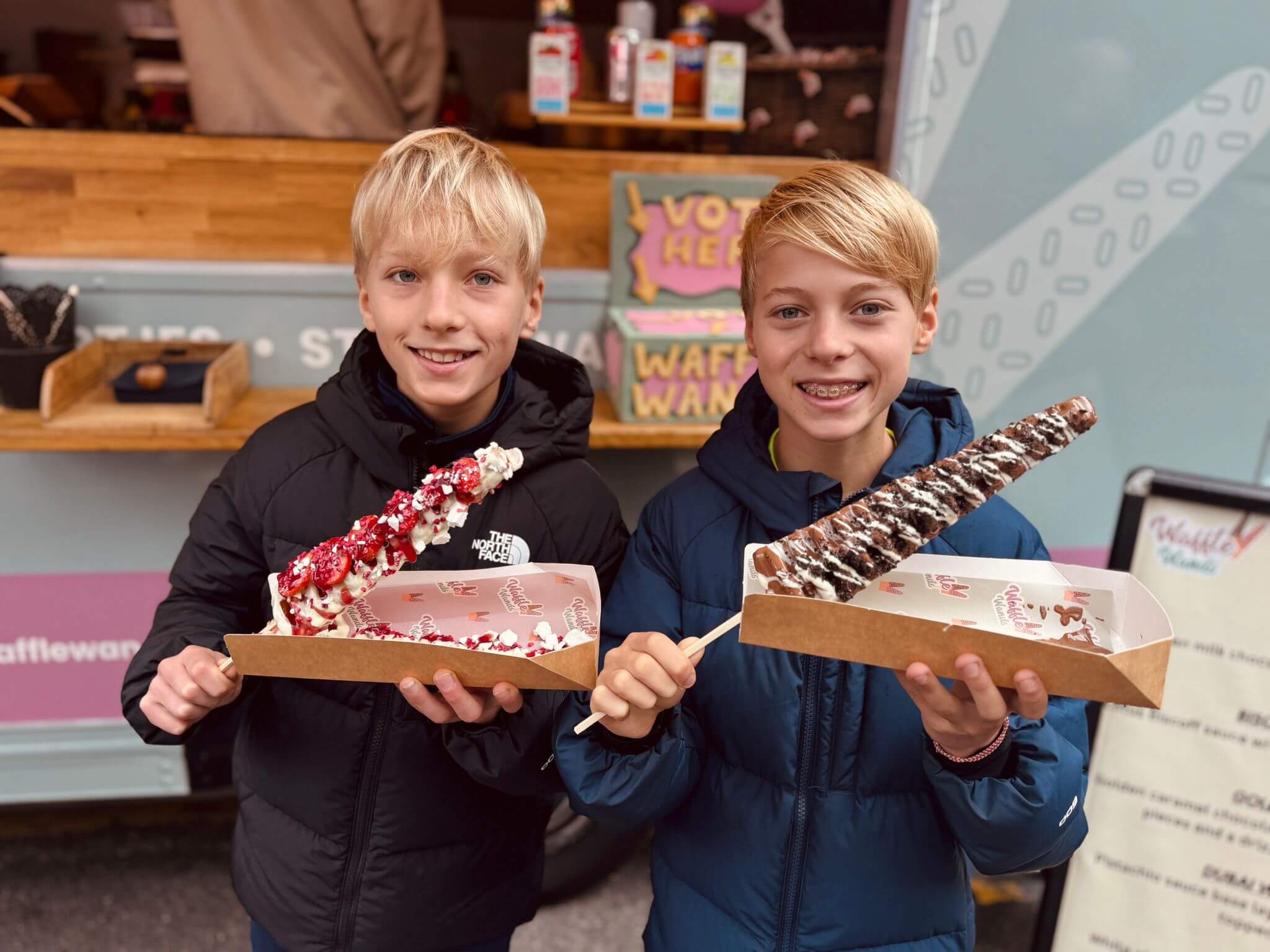 Waffle Wands are proud of their Danish roots – “that’s what inspired us to start the waffles on a stick business” says Louie. “But we are influenced by Dutch food too, and we like to bring a touch of Amsterdam to everywhere we go.” Which explains the Poffertjes and the Stroopwafels on the menu. It’s all an education. Come see. “Our food is very interactive to watch we bake everything fresh in front of our audience and top our treats with warm sauces and luxury toppings. People are always blown away by our innovative products and the flavours we offer.”